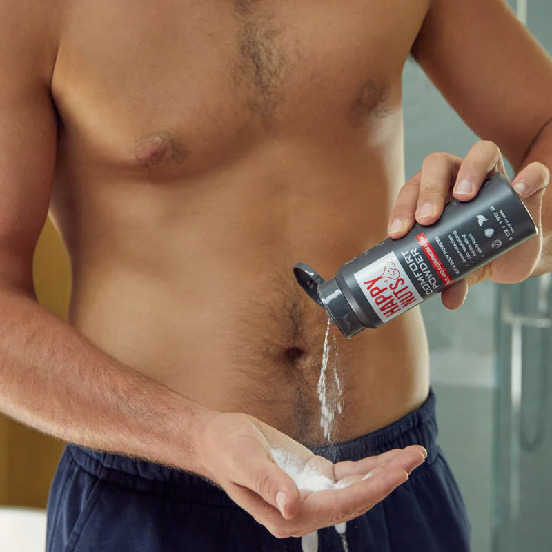 Our subtle masculine-scented Comfort Powder leaves you feeling fresh and energized. Can be used on the groin and feet areas, as well as any other area that experiences chafing or wetness. Our fragrance-free Comfort Powder is also available for those that prefer no scent.