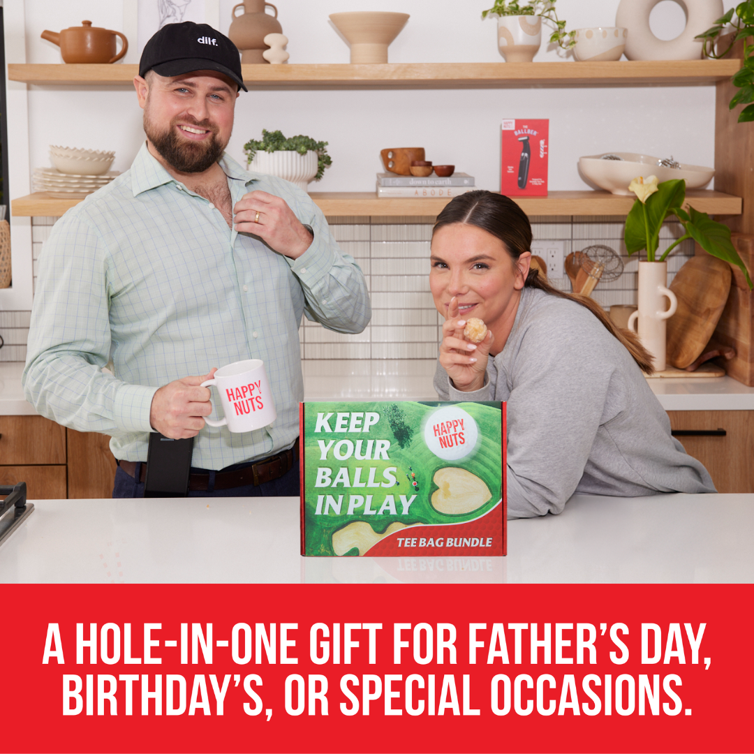 The Tee Bag Bundle comes wrapped in our hilarious and amazing box design that doesn't even need the wrapping paper. The perfect gift for the golf guy in your life because we know he's sweaty while he's out there walking 18 holes.